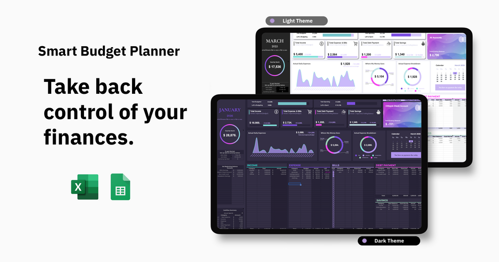 Take full control of your money with the Smart Budget Planner — a clean, powerful, and easy-to-use spreadsheet designed to help you track your income, expenses, bills, savings, and financial goals all in one place.