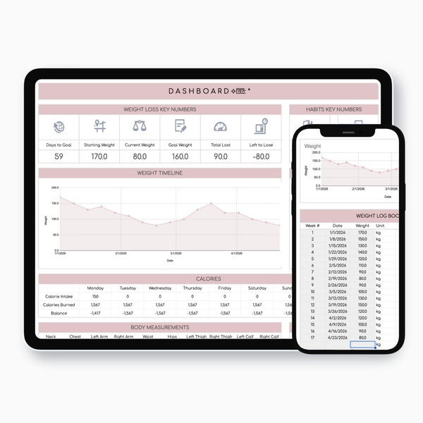 • Weight Loss & Fitness Tracker – Track your weight, body measurements, meals, calories, workouts, and habits all in one place. Stay motivated, monitor progress, and reach your health goals efficiently.